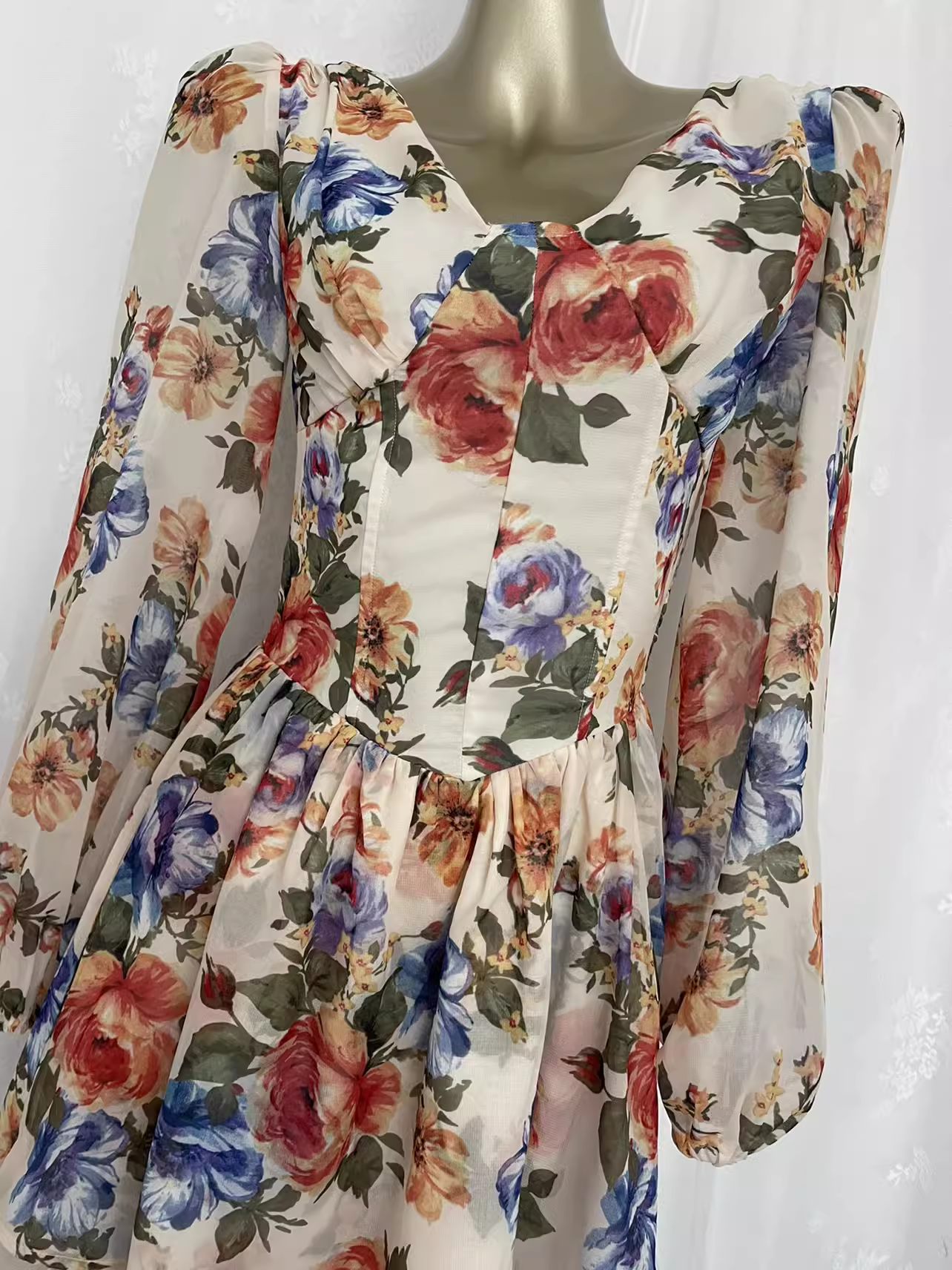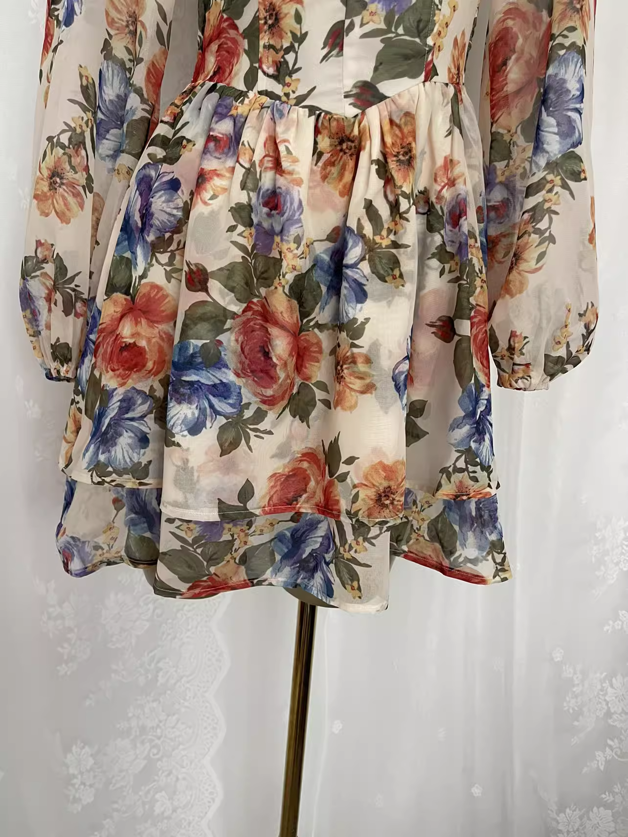 A line V Neckline Floral Chiffon Travel Vacation Floral Beach Dress Short Dress SD0012