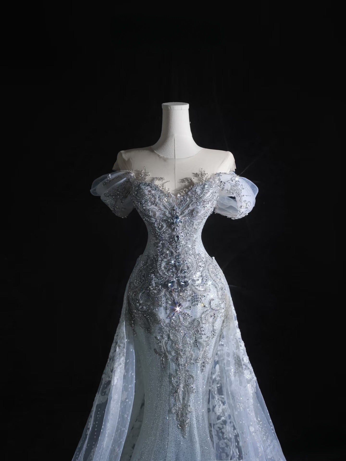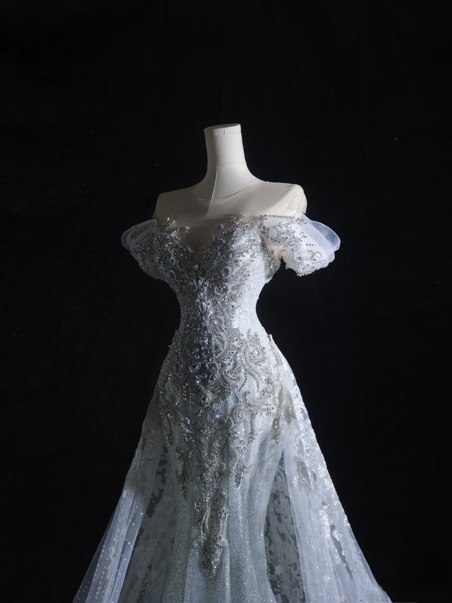 Mermaid Off The Shoulder Silver Beads Long Prom Dresses Formal Evening Dress SD2333