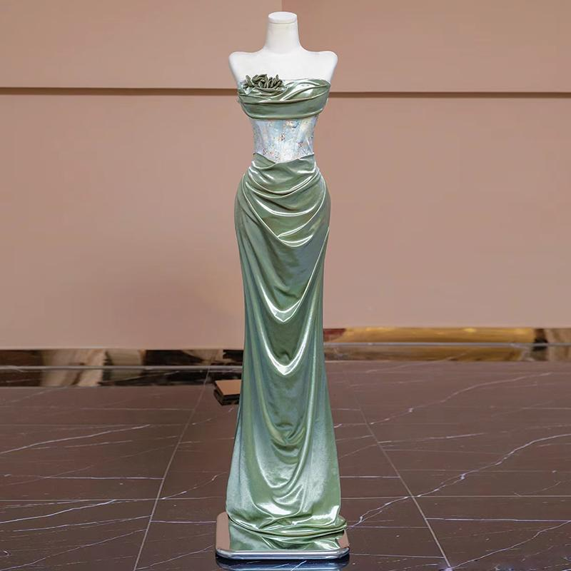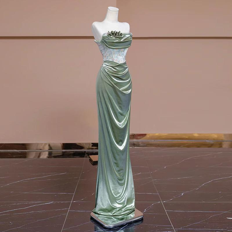 Mermaid Sweetheart Green Long Evening Dress Satin Prom Dresses SD1494
